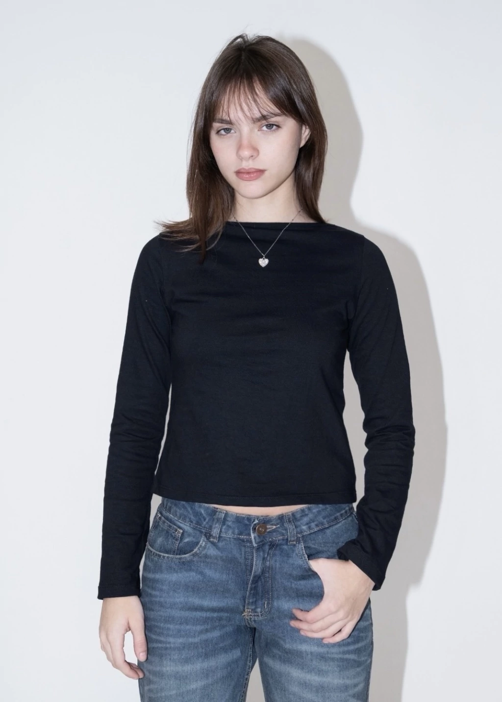 Remera manga larga básica. Cuello bote. Estilo loose fit. Super abrigada. 100% algodón, un básico eterno.
